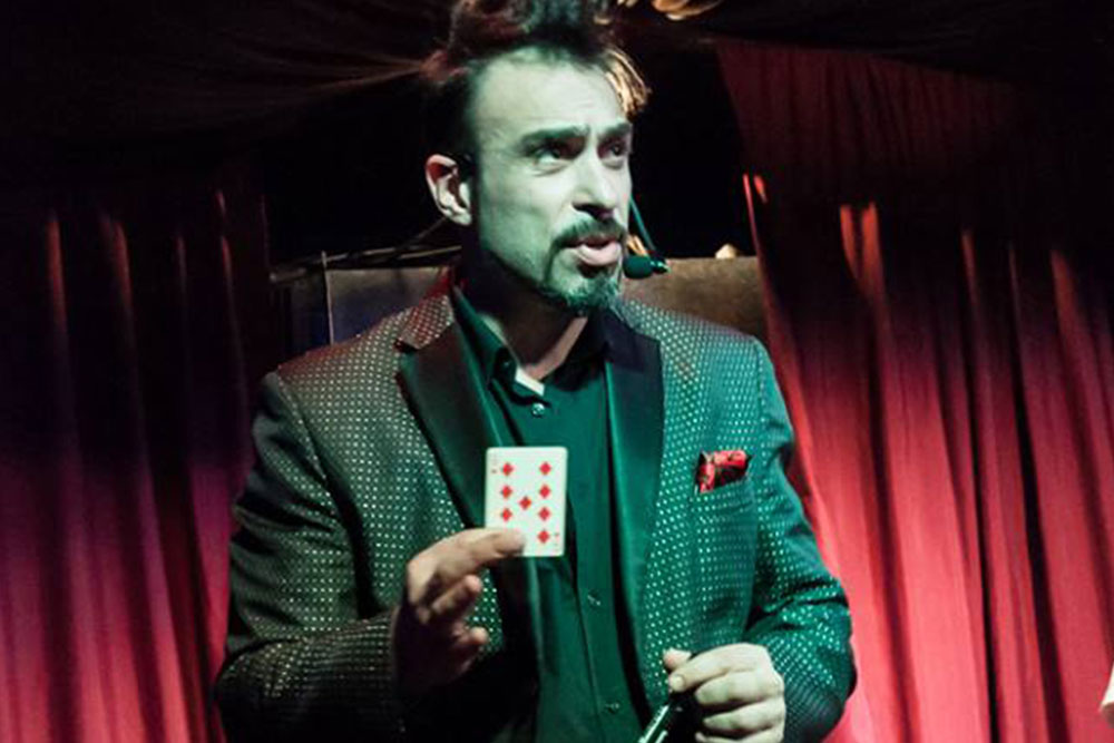 Es un Mago que realiza un show… donde la Magia y el humor se funden para lograr momentos de máximo entretenimiento con el público!!!